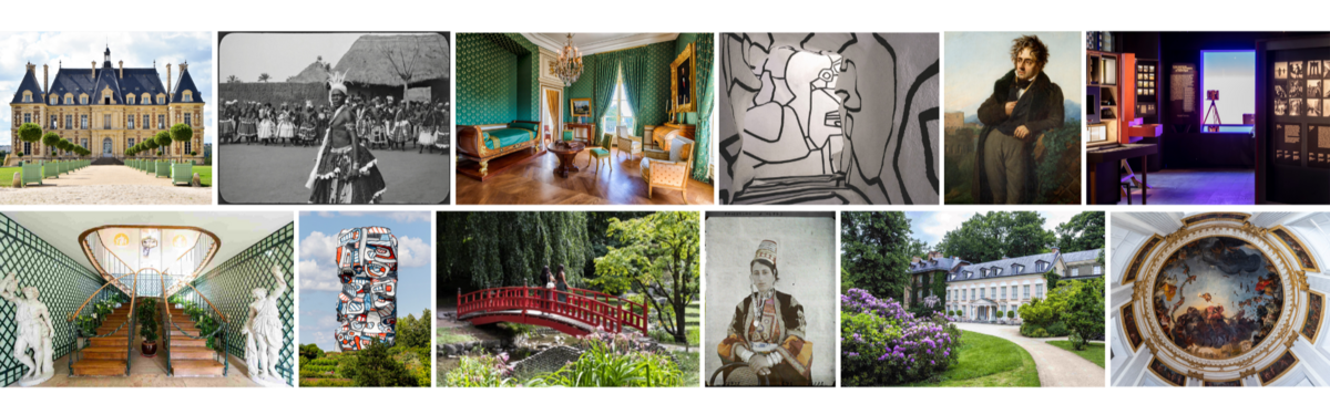 Extérieur Château de Sceaux - musée départemental © CD92/O. Ravoire / Vodúnon exécutant la danse d'Héviosso, Oumbégamé (près d'Abomey), Dahomey (Bénin), 1930 (F. Gadmer, photogramme extrait de la bobine « Fétichisme 1, 110153) © Musée départemental Albert-Kahn/CD92 / Salon de Neully - Château de Sceaux - musée départemental © CD92/W. Labre / Intérieur La Tour aux figures, Jean Dubuffet © CD92/W. Labre / Portrait de Chateaubriand par Girodet © CD92/W. Labre / La Fabrique des Images - musée départemental Albert-Kahn © CD92/O. Ravoire / Escaliers - maison de Chateaubriand © CD92/G. Briand / Jean Dubuffet, la Tour aux figures, ©ADAGP/CD92/S. Gutierrez-Ortéga / Jardin japonais - musée départemental Albert-Kahn © CD92/J. Bechler / Bethléemitaine chrétienne coiffé de la chatwé, Bethléem (Palestine), 1918 (P. Castelnau, autochrome, A15773) © Musée Albert-Kahn/CD92 / Extérieur - maison de Chateaubriand © CD92/W. Labre / Coupole Pavillon de l'Aurore - CD92/S. Gutierrez-Ortéga